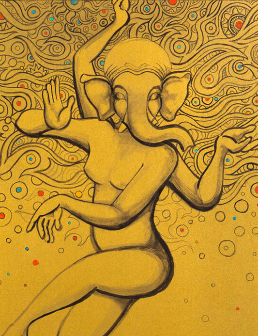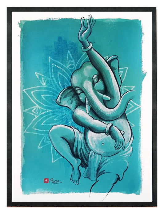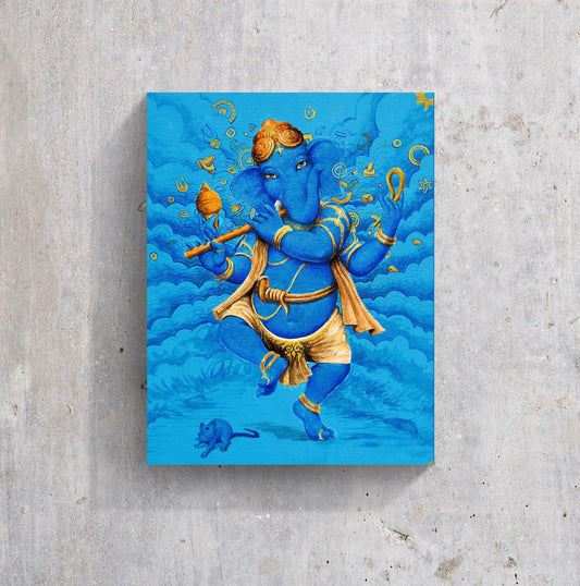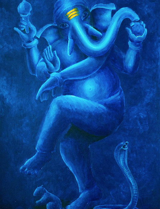 Dancing Lord Ganesh In Blue and Gold - PRINTS